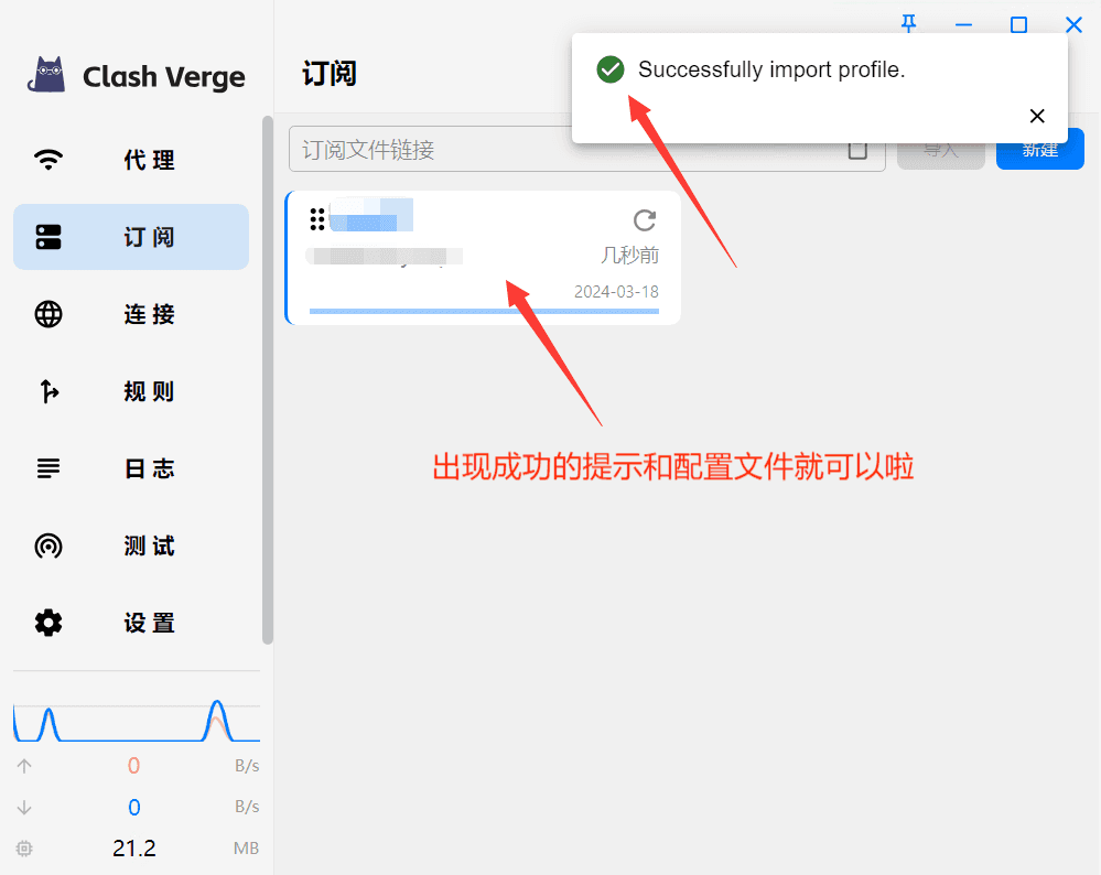前往“订阅”里黏贴填入你的密钥,再点击“导入”。